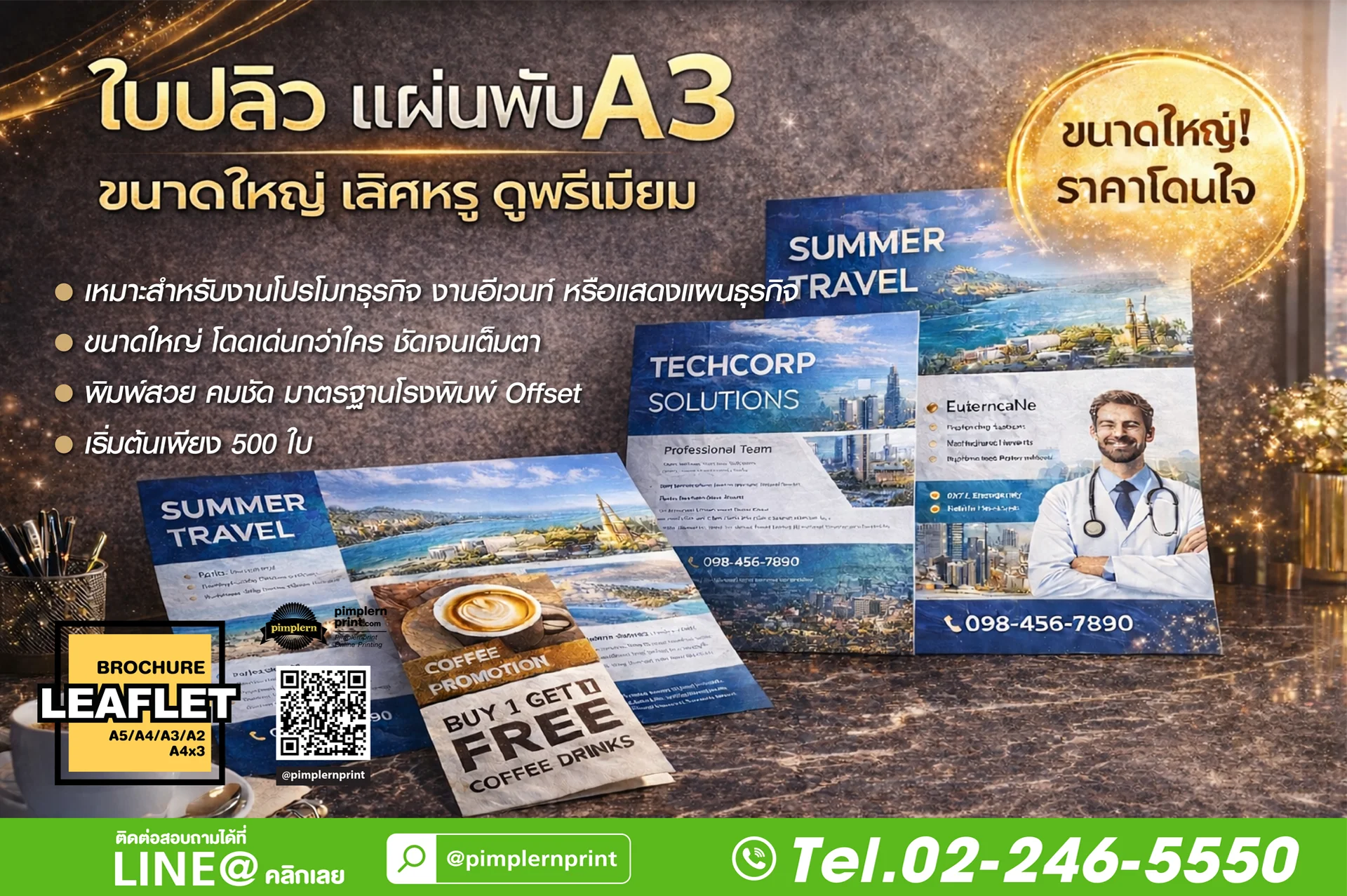 หากคุณต้องการใบปลิวหรือแผ่นพับขนาด A3 ที่ต้องการความโดดเด่น ขนาดใหญ่ เห็นชัด สะดุดตา เหมาะกับการสื่อสารข้อมูลจากระยะไกล