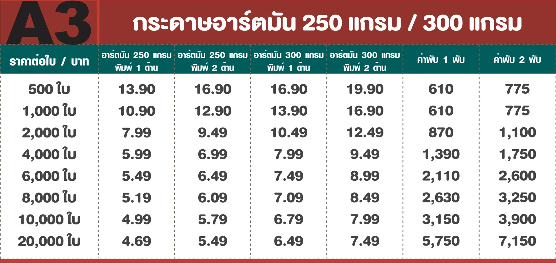 บริการพิมพ์ใบปลิวและแผ่นพับขนาด A3 ระบบ Offset เหมาะสำหรับงานขายและงานโปรโมตที่ต้องการความโดดเด่น ขนาดใหญ่ สีคมชัด แสดงราคาชัดทุกขั้นตอน ผลิตเองจากโรงพิมพ์ ไม่มีค่าใช้จ่ายแอบแฝง