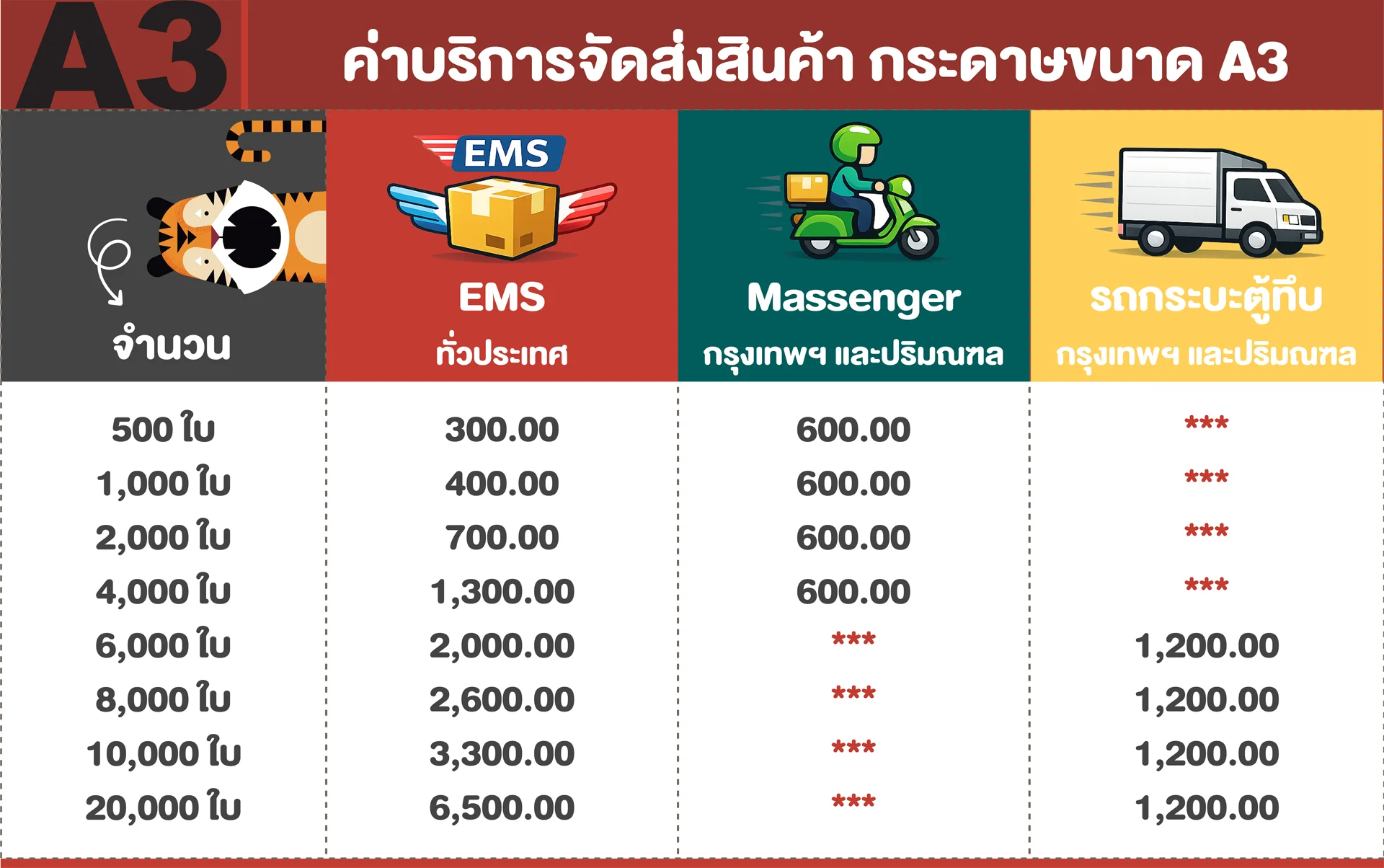 ค่าจัดส่งแสดงชัดเจนก่อนยืนยันการสั่งพิมพ์ ไม่มีค่าใช้จ่ายแอบแฝง
