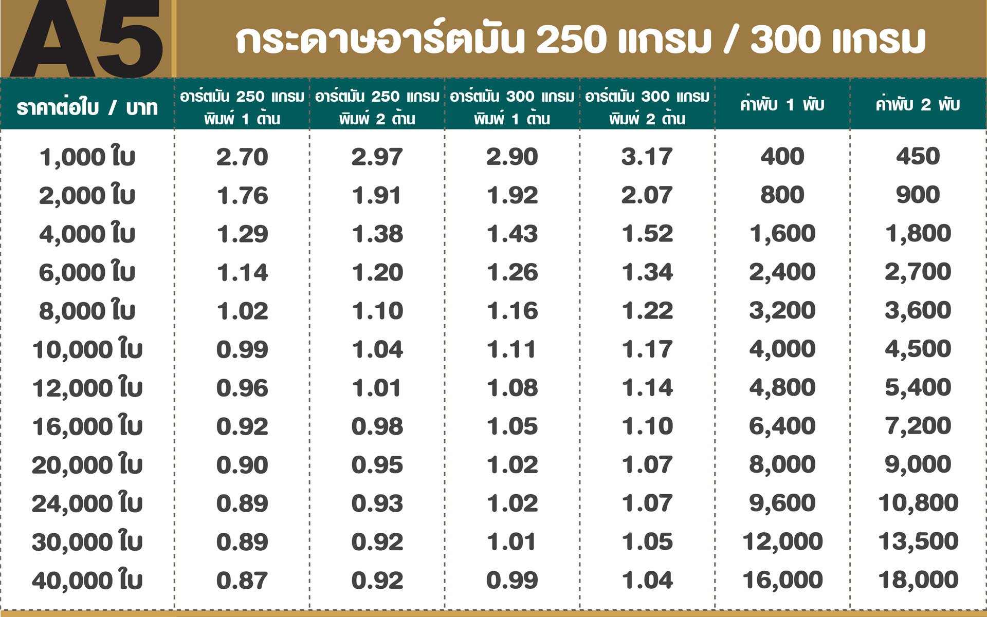 สามารถเลือกกระดาษให้เหมาะกับ งานแจก งานโปรโมชั่น งานภาพลักษณ์ หรือแผ่นพับพรีเมียมได้ตามต้องการ