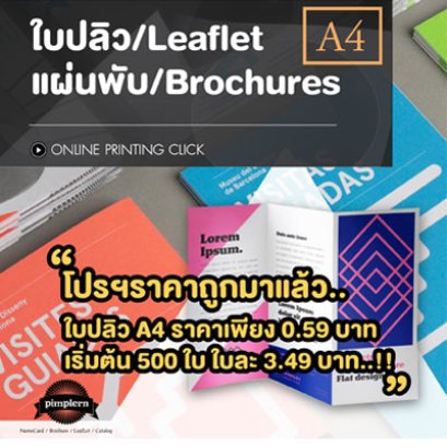 โปรฯราคาถูกมาแล้ว ใบปลิว A4 ราคาเพียง 0.59 บาท เริ่มต้น 500 ใบ ใบละ 3.49 บาท