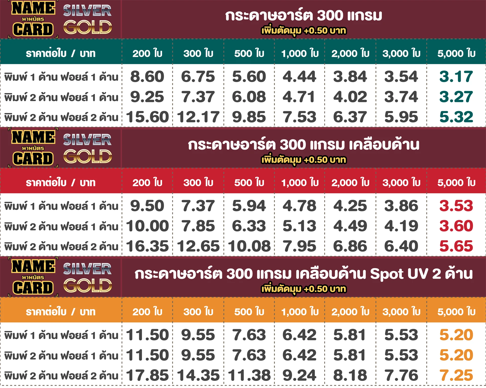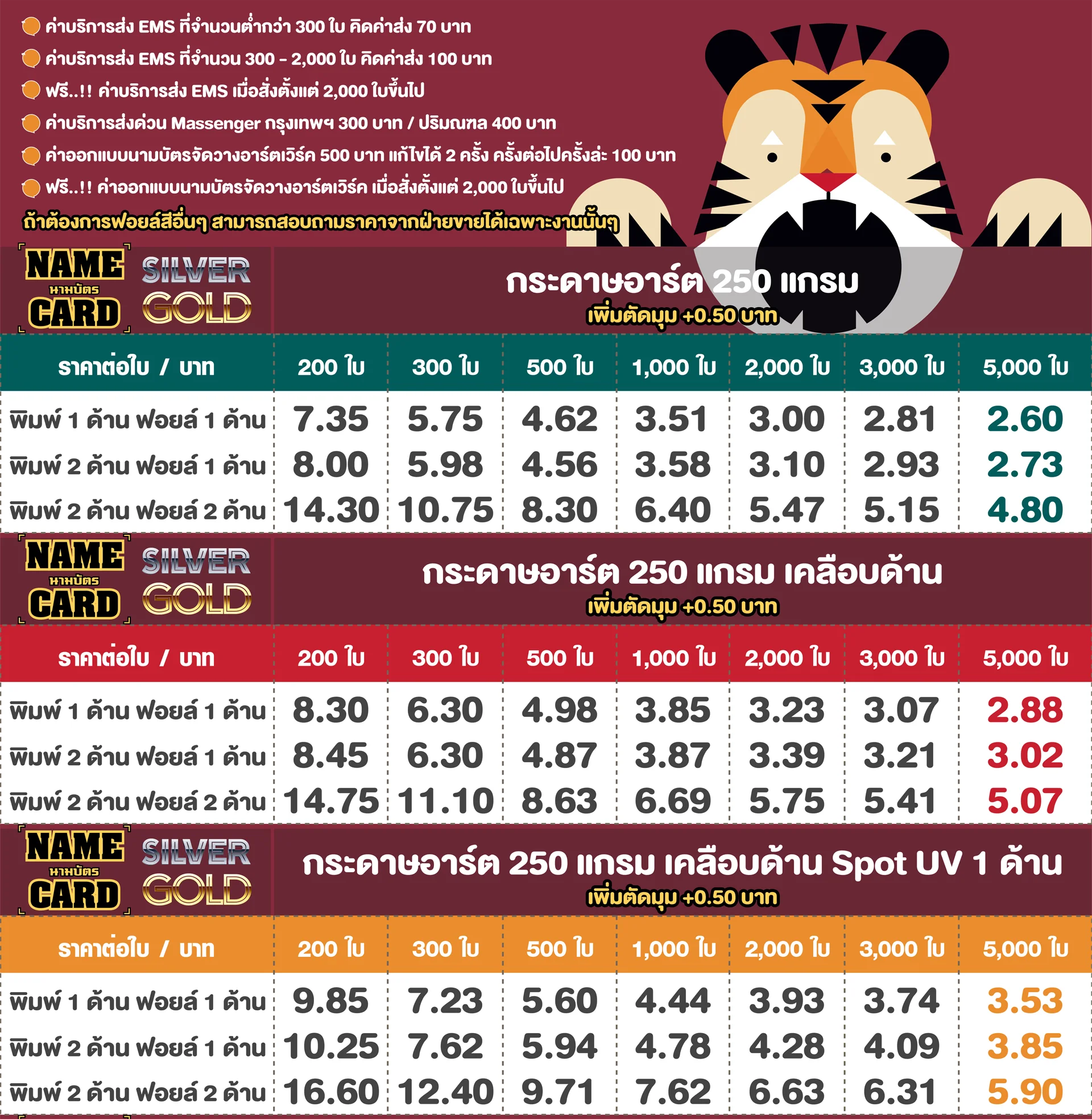 สอบถามราคา หรือสั่งพิมพ์นามบัตรปั้มฟอยล์