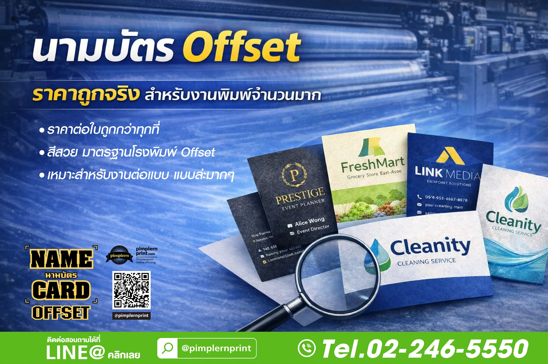 Tag : นามบัตร Offset, พิมพ์นามบัตร Offset, นามบัตรราคาถูก, นามบัตรราคาประหยัด, นามบัตรจำนวนมาก, โรงพิมพ์นามบัตร, พิมพ์นามบัตรบริษัท, พิมพ์นามบัตรพิมพ์เพลินพริ้นท์, พิมพ์เพลินพริ้นท์, pimplernprint