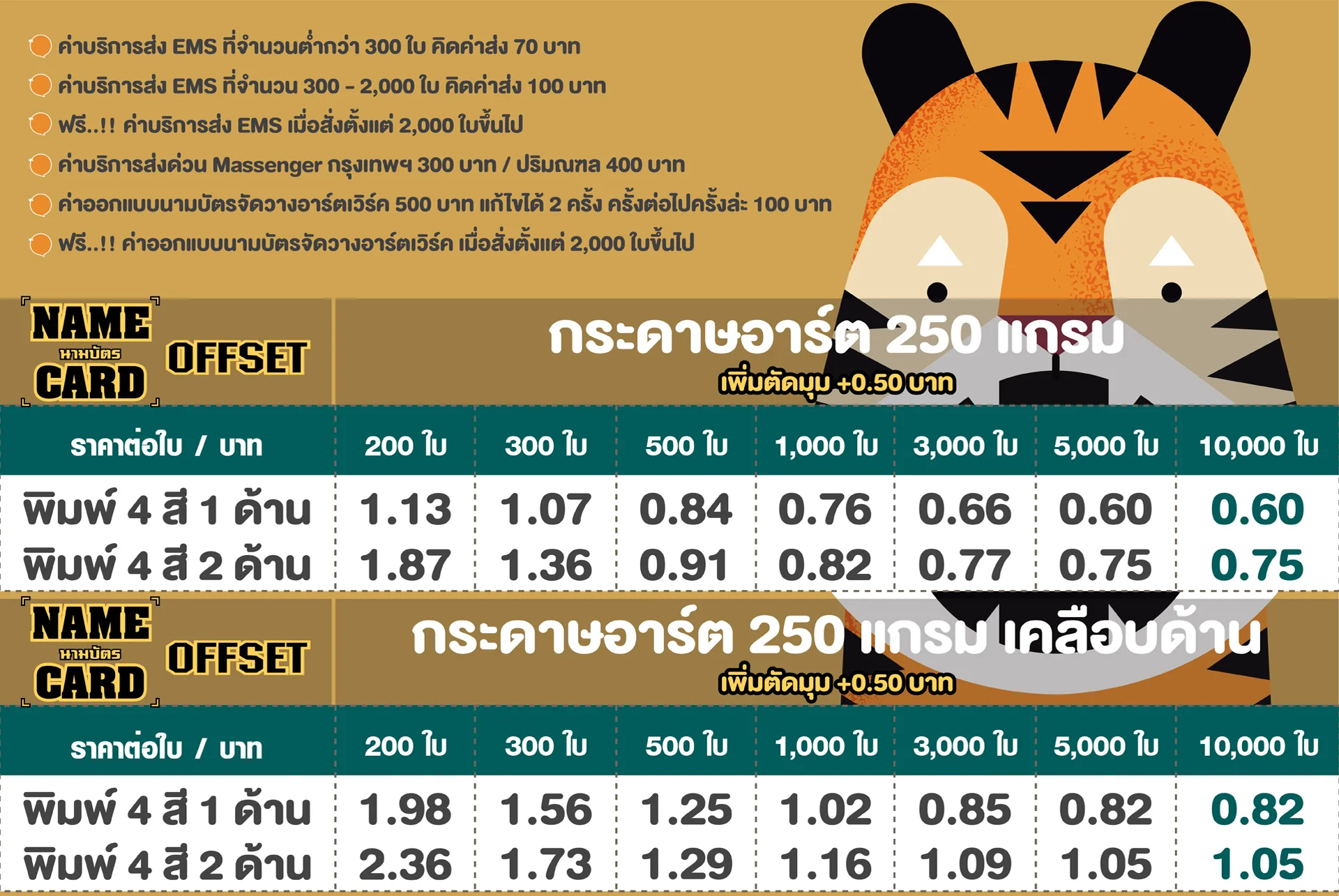 นามบัตร OFFSET กระดาษอาร์ต 250 แกรม