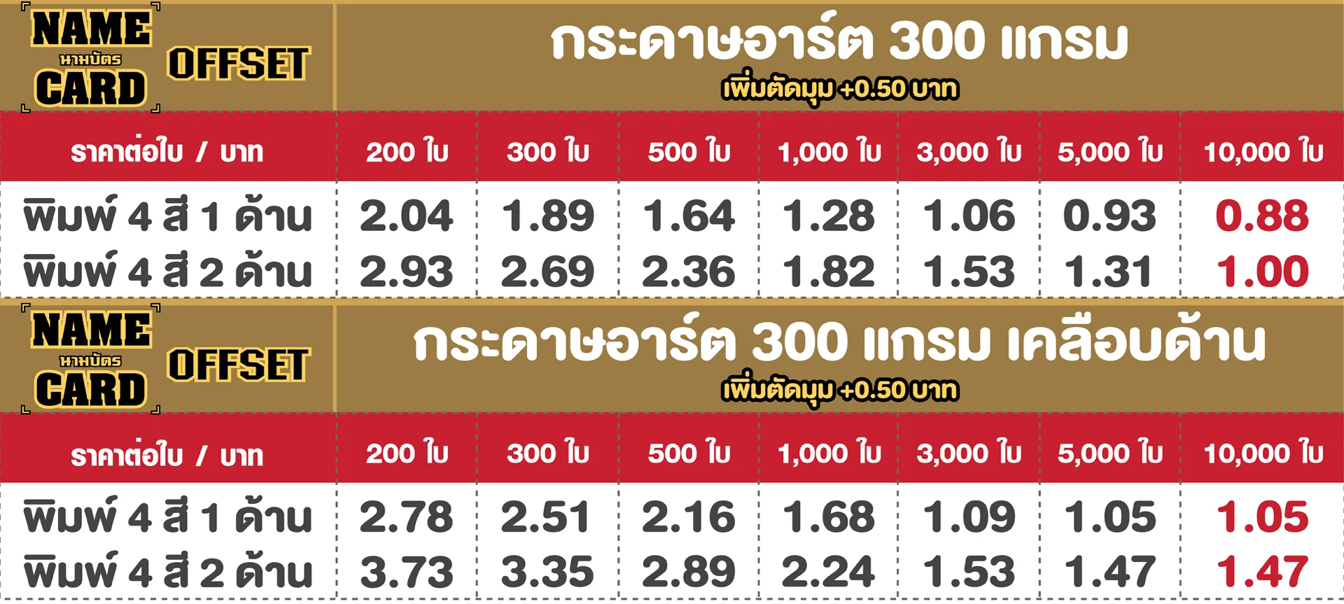 นามบัตร OFFSET กระดาษอาร์ต 300 แกรม