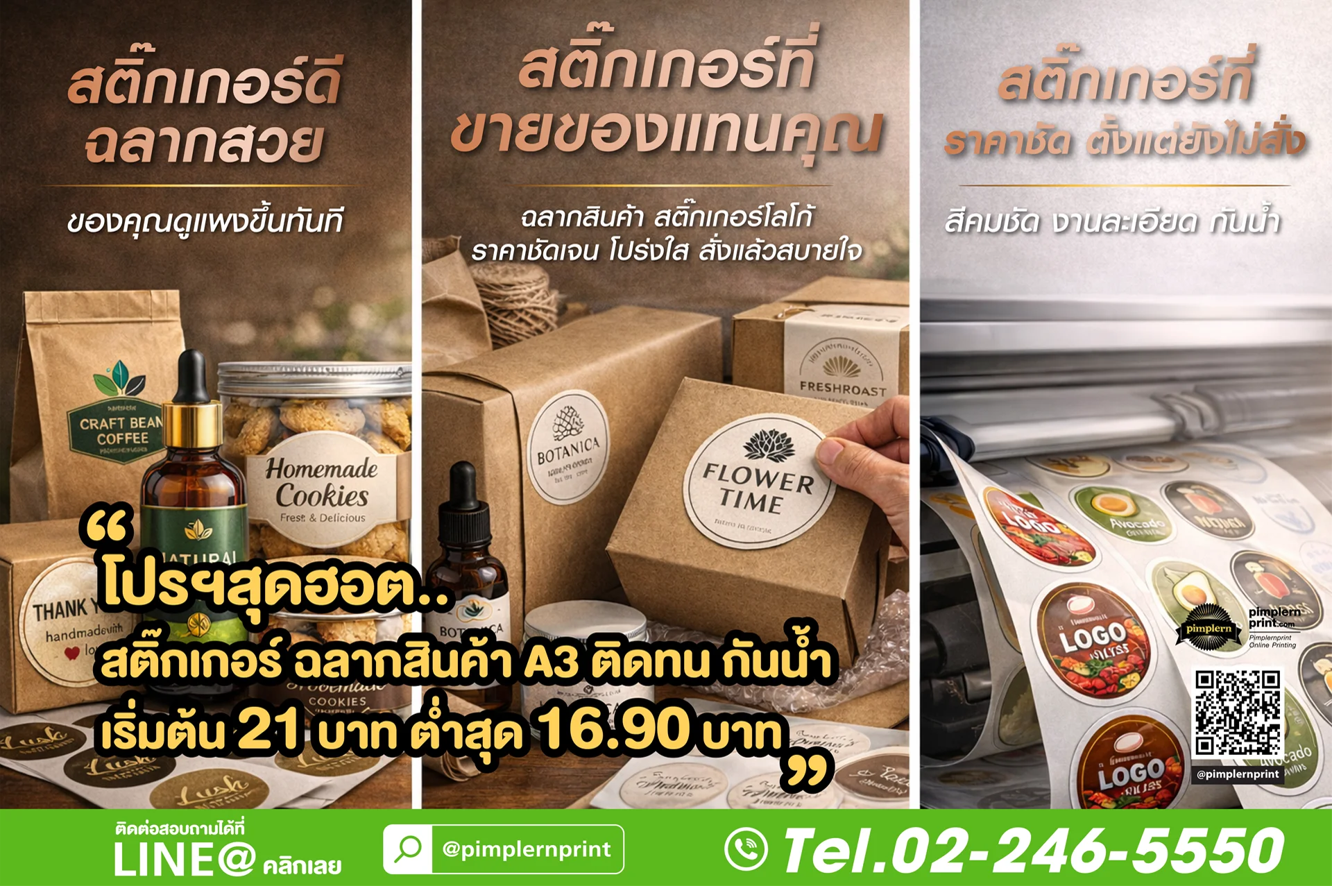Tag : สติ๊กเกอร์ฉลากสินค้า, พิมพ์สติ๊กเกอร์คละแบบ, สติ๊กเกอร์ขั้นต่ำ 5 ใบ, สติ๊กเกอร์ Digital Offset, ฉลากสินค้า, สติ๊กเกอร์ PP, สติ๊กเกอร์ใส, สติ๊กเกอร์คราฟท์, สติ๊กเกอร์เมทัลลิค, โรงพิมพ์สติ๊กเกอร์, พิมพ์เพลินพริ้นท์, pimplernprint